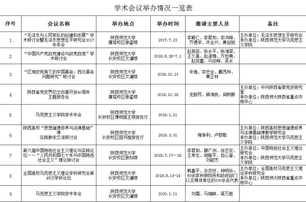 马克思主义学院举办学术会议情况一览(2017-2020)