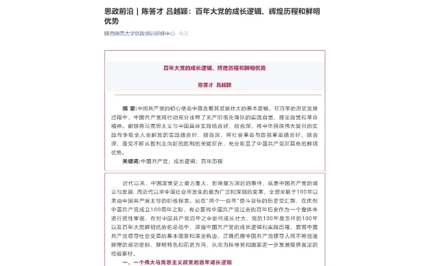 5月9日,西北大学学报2021年第3期刊发我院陈答才、吕越颖文章:《百年大党的成长逻辑、辉煌历程和鲜明优势》。