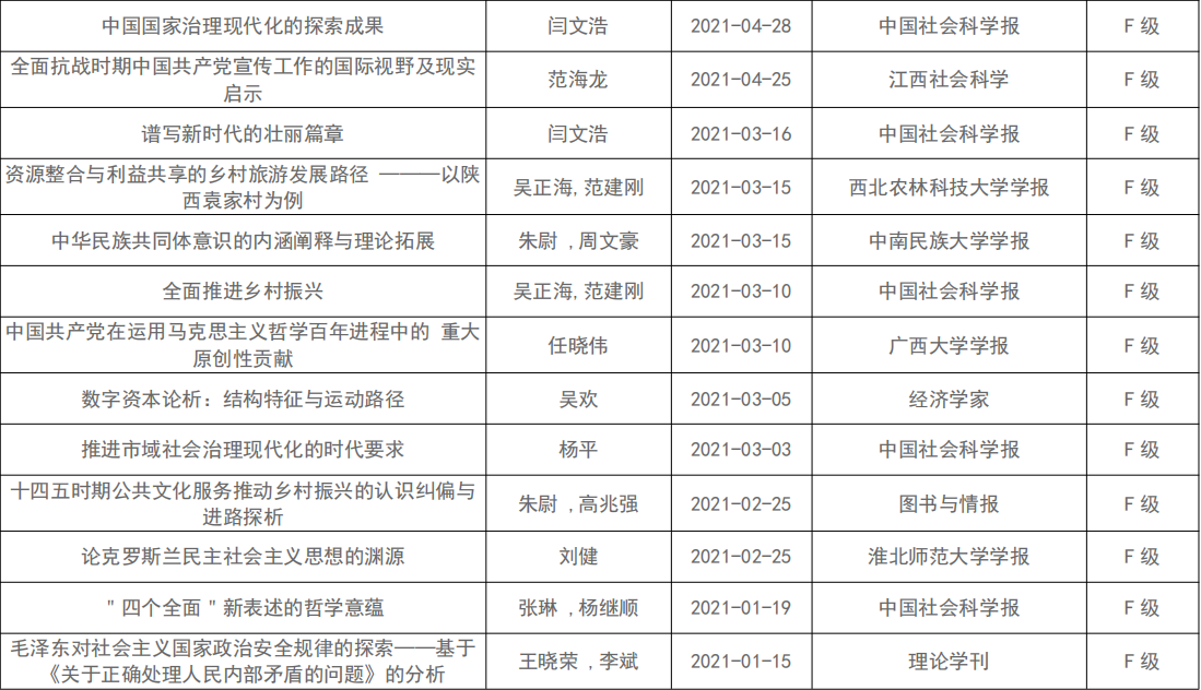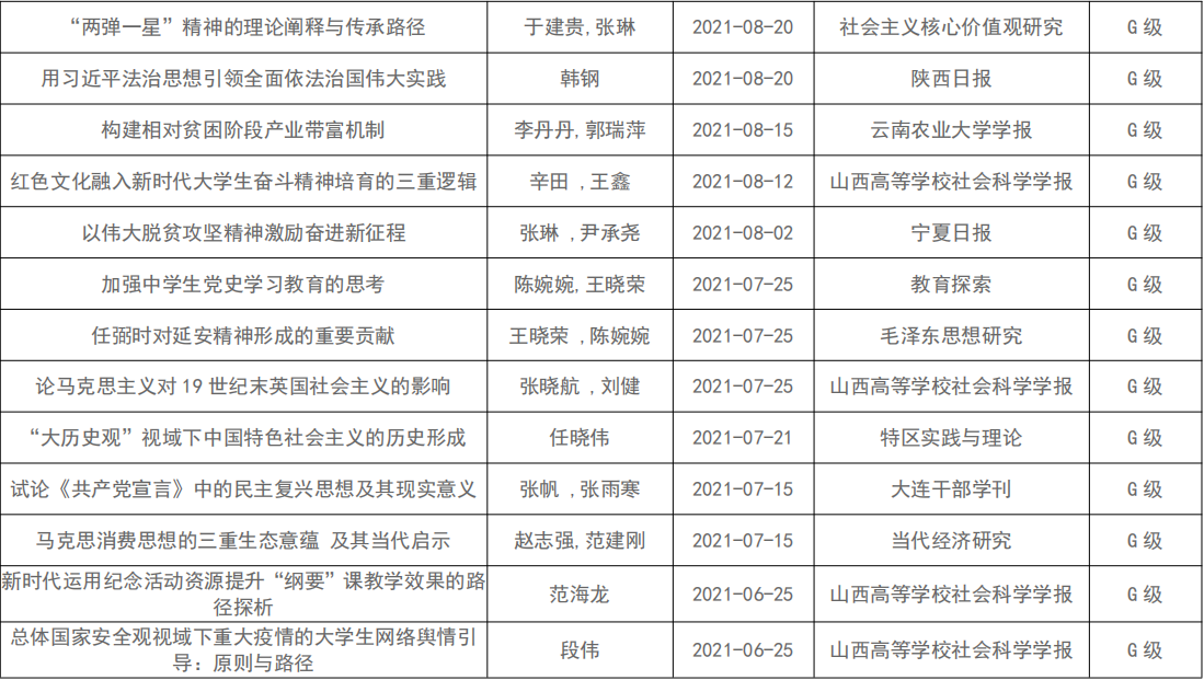 学院教师科研论文汇总(2021年)
