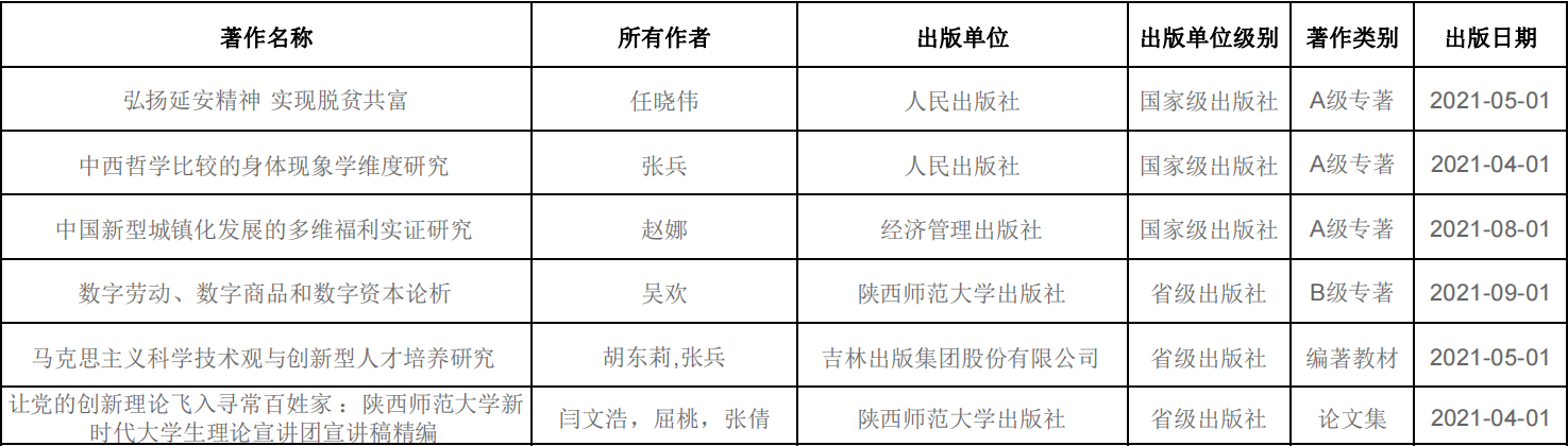 学院教师著作汇总(2021年)
