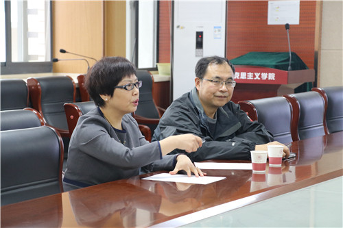 闫文浩对校工会来学院调研和指导工作表示了欢迎。他从党群工作、教学科研、文化建设等几方面介绍了我院的基本情况。他谈到,课堂教学工作是重中之重,学院举办正学论坛,邀请知名教授进行讲座,支持青年教师举办“青年学术沙龙”,对青年教师发展培养上做到政治上引导、生活上关心、科研上培养。学院设立党团活动室、资料室、青年教师工作室等,为全体师生提供良好的发展环境。他指出,在全院师生的支持下,学院独立设置一年来,在学校和学院的各项活动中展现了良好的精神风貌,教育部网站等主要门户网站和纸质媒体对学院的报道达20多次,特别是党的十九大召开以来,学院教师发表文章10余篇。学院的微信公众号以及新时代大学生理论宣讲团取得了良好的反响。