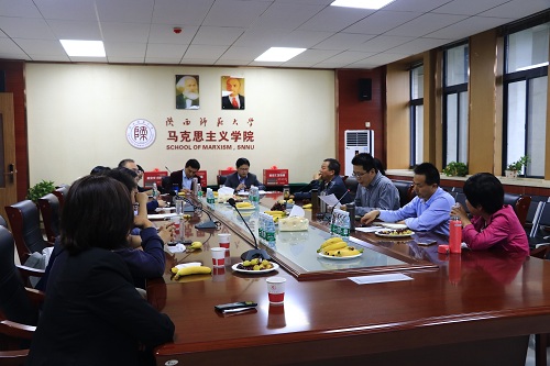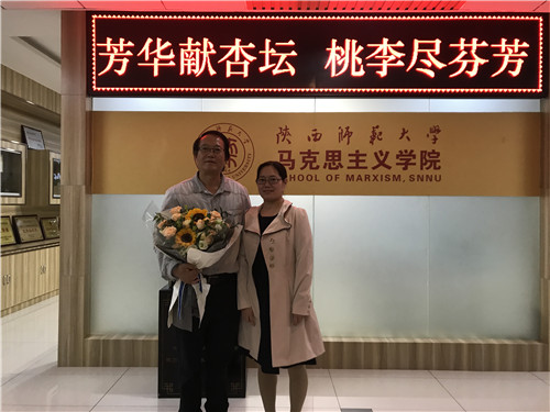 随后,教师代表发言。陈答才教授作为与马启民教授共事多年、相知相亲的同事及好朋友,诙谐地赞扬了他的亲民与直爽。王晓荣教授动情地从生活的点滴讲述了马老师对自己的真诚关怀与帮扶,特别是在人生低谷时期和关键扭点上的提携。马克思主义中国化研究教研究主任张帆代表教研室,同时作为学生辈表达了对马启民教授的敬仰与感谢。作为授业弟子,多年聆听马启民教授教诲的全燕黎,精心为自己的恩师专门准备了特别的发言稿,在表达心声的同时也深深地感谢和祝福老师。会议现场,因出差在外不能到场的校统战部部长罗永辉,通过微信语音的方式表达了对自己博士生导师马启民老师的感谢与恩情。