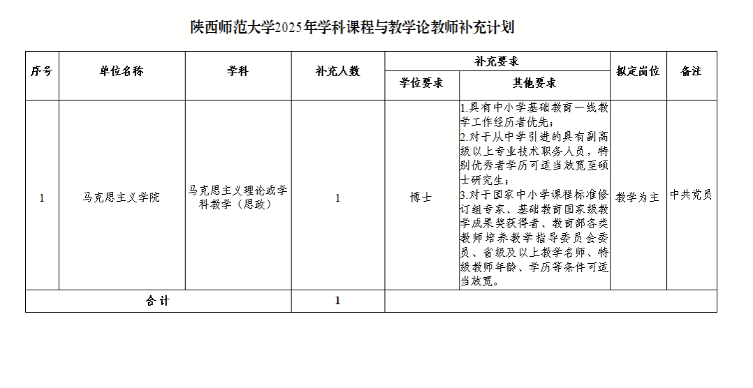 3.陕西师范大学马克思主义学院2025年人员补充计划有效期至2025年12月31日,教学科研人员须在学校审批通过之日起1年之内按规定办理相关入职手续.