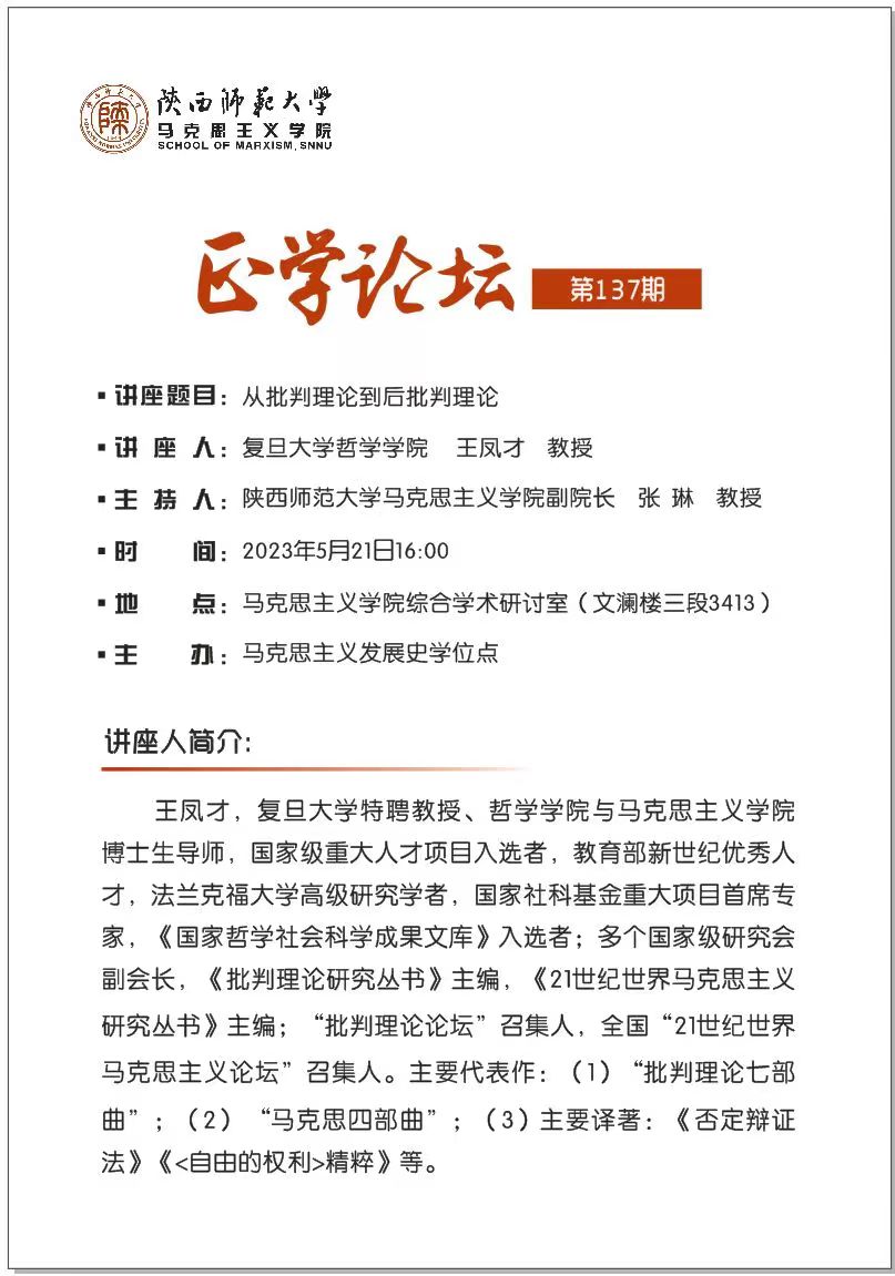 【正学论坛】第一百三十七期 王凤才:从批判理论到后批判理论