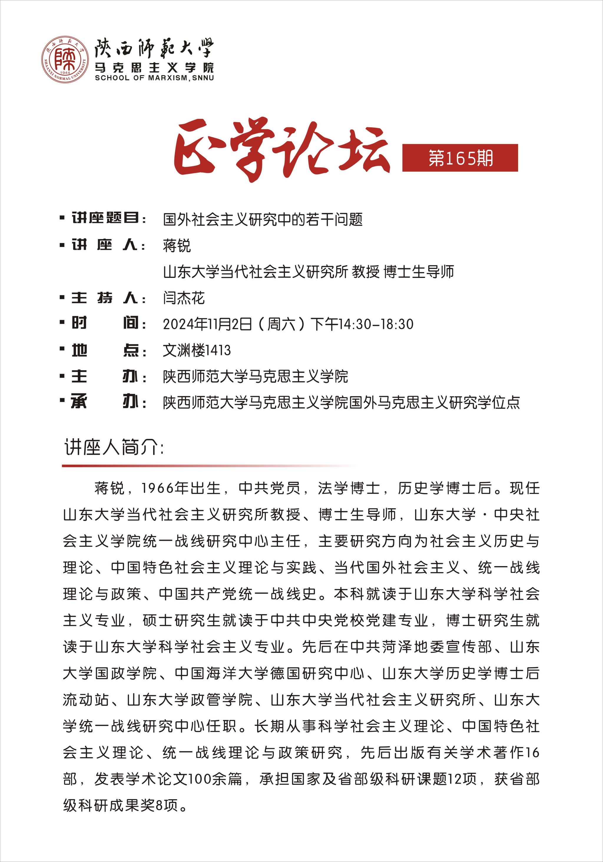 【正学论坛】第一百六十五期 蒋锐:国外社会主义研究中的若干问题