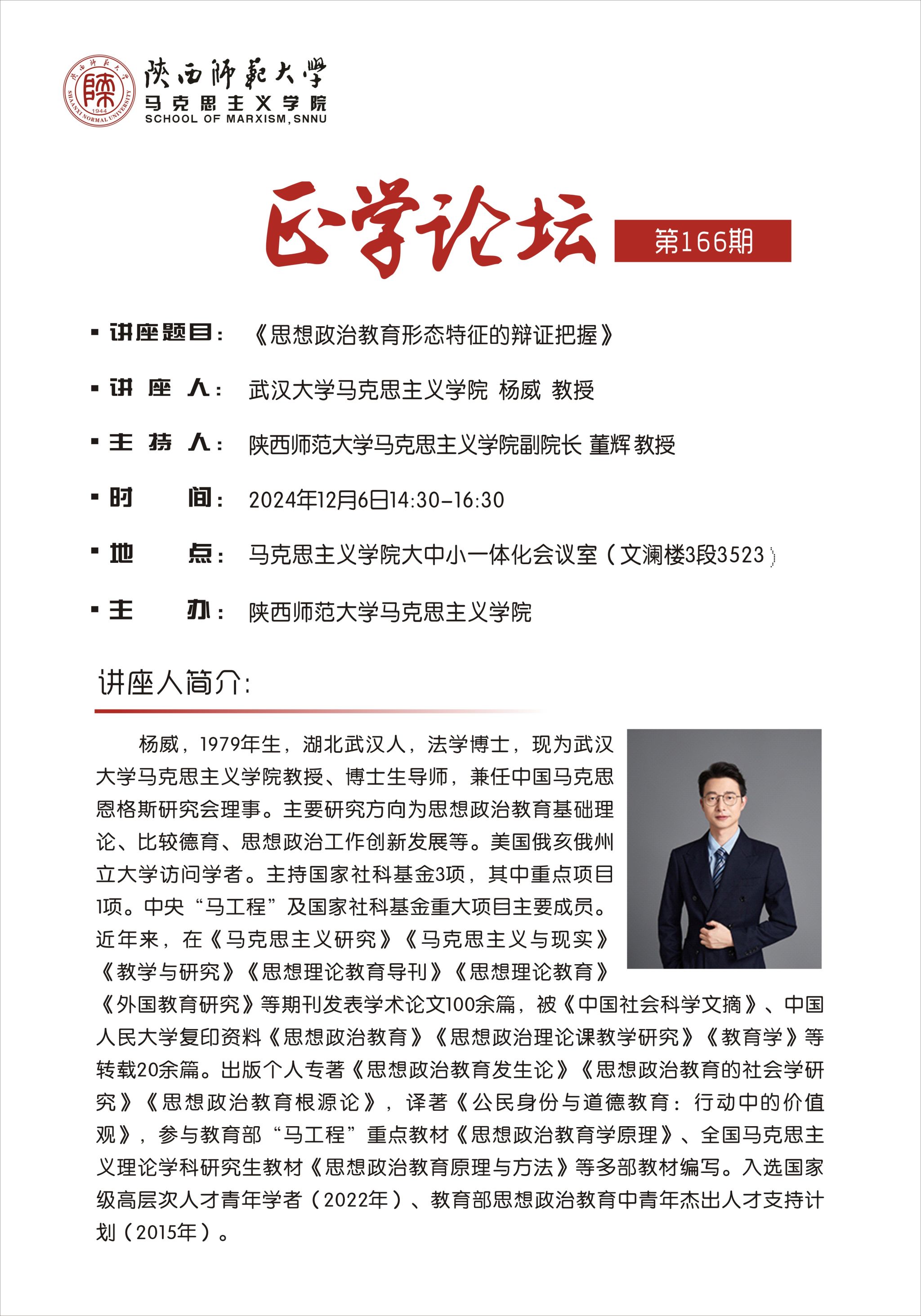 【正学论坛】第一百六十六期 杨威:思想政治教育形态特征的辩证把握