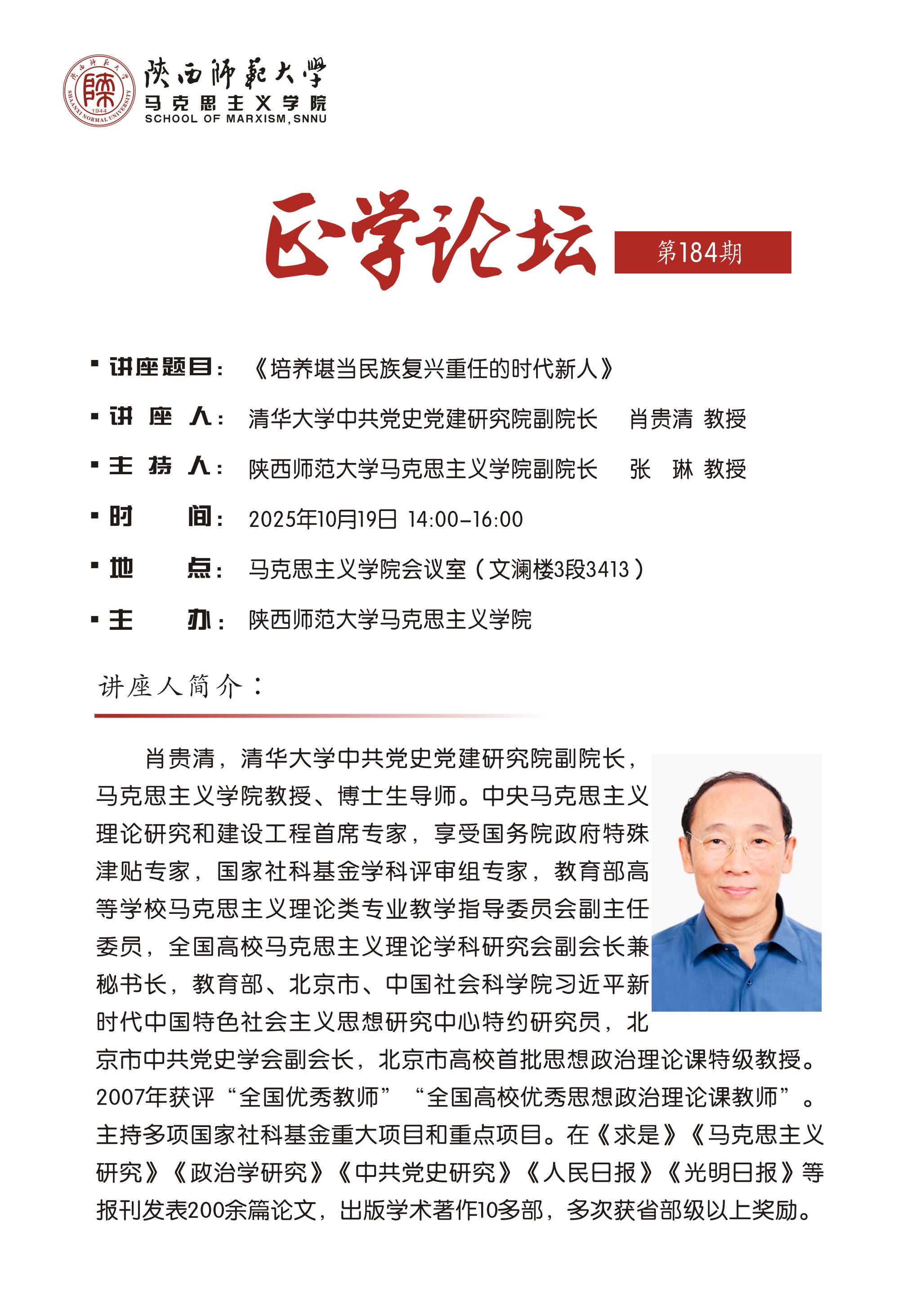 【正学论坛】第一百八十四期 肖贵清:培养堪当民族复兴重任的时代新人