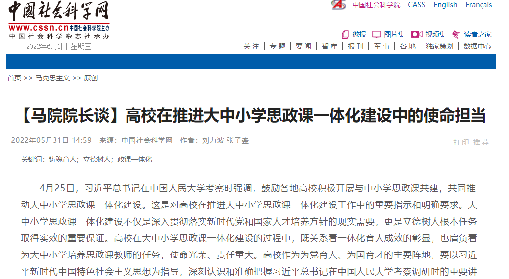 原文链接:【马院院长谈】高校在推进大中小学思政课一体化建设中的使命担当-中国社会科学网 (cssn.cn)