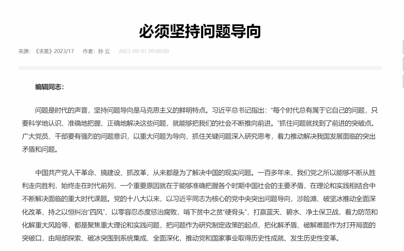 9月1日,《求是》杂志刊发我院孙云文章:《必须坚持问题导向》。