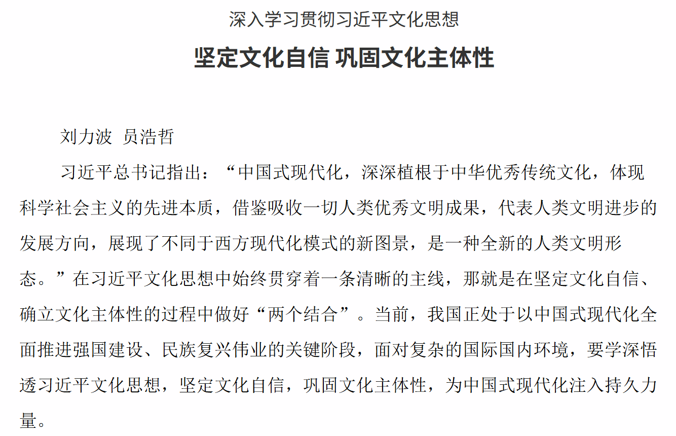 12月29日,《陕西日报》刊发学院教授、习近平文化思想研究中心陕西省协同研究基地研究员刘力波老师和硕士生员浩哲文章:《坚定文化自信 巩固文化主体性》。