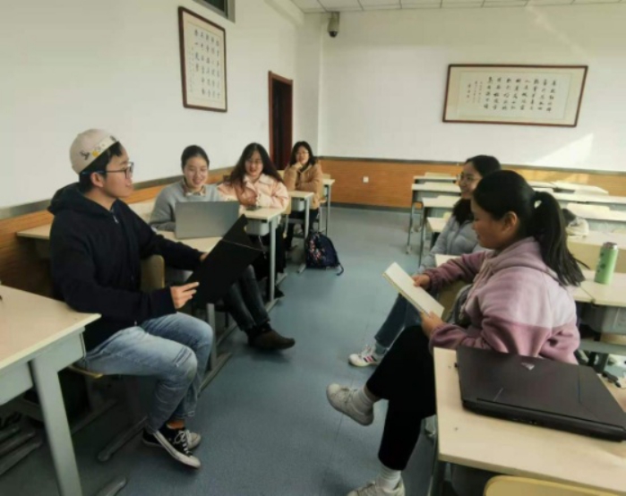 康中乾老师授课班级的《原理》课实践教学讨论也热烈展开。11月17日和26日,文学院2019级新文科基地班进行了《原理》课实践教学两次读书研讨会,围绕 “聚焦文本,深入阅读《青年在选择职业时的考虑》”主题展开研讨,孙诗颖同学主持活动。江若莲、苏一鸣、丁俊智、杨小凡、张语桐、勾松焓、孙诗颖分享了《青年在选择职业时的考虑》的阅读感想,谈到马克思这篇文章给予自身的强烈感触,指出青年在选择职业时要结合自身情况和社会实际做系统考虑,未来所想要从事的工作应当是有利于社会和人类,是怀着满腔理想与热情进行的。2019级汉语卓越班围绕《习近平谈治国理政》第三卷进行了交流讨论。龚小倩、张欢、林立珠、木岚倩、李煜、张诗伟、杨晓敏等同学重点研读了习近平总书记关于“不忘初心、牢记使命”重要论述,并进行了观点交流讨论,指出中国共产党坚持以人民为中心、为民治国、为民理政的执政理念,全心全意为人民服务,从实行改革开放的伟大决策到如今即将实现的全面小康,党一直带领着全国人民走在通往幸福的道路上。青年应该担当起时代赋予的责任使命。