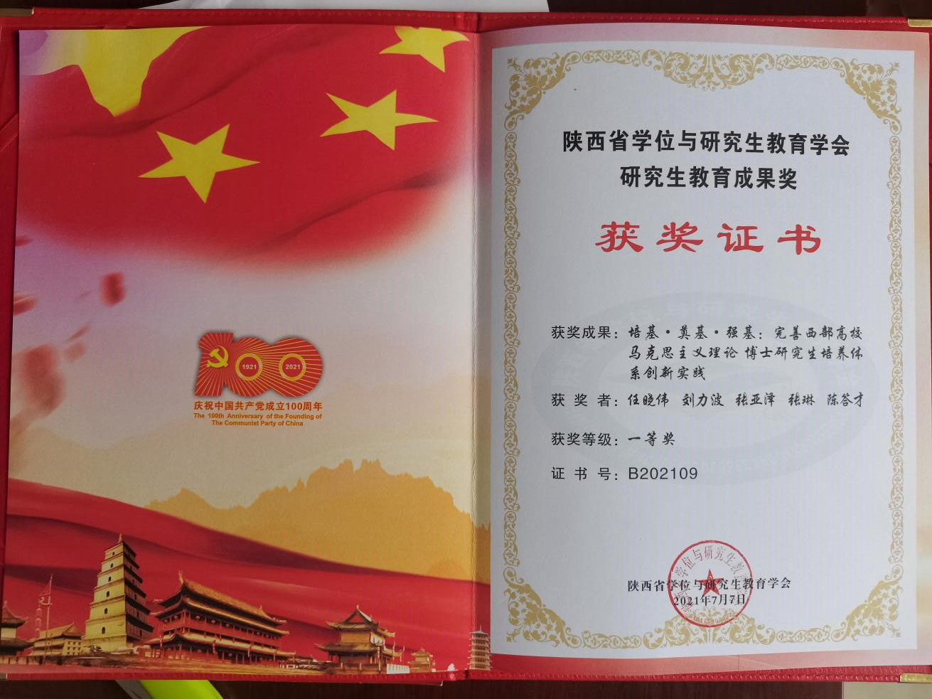 7月15日至17日,陕西省第十八届学位与研究生教育学术交流研讨会在延安大学举行。各会员单位主管研究生教育及学科建设的领导和管理人员、“研究生教育成果奖”获奖代表及论文作者参会。会议旨在表彰和宣传在研究生教育工作中涌现出的优秀单位,进一步推动全省研究生教育事业的发展。由我院任晓伟教授主持,刘力波、张亚泽、张琳、陈答才等教师共同完成的《培基·奠基·强基:完善西部高校马克思主义理论博士研究生培养体系创新实践》成果荣获研究生教育成果一等奖。这是我院首次荣获的研究生教育成果奖,表明我院的研究生教育培养工作得到业内的高度肯定。
